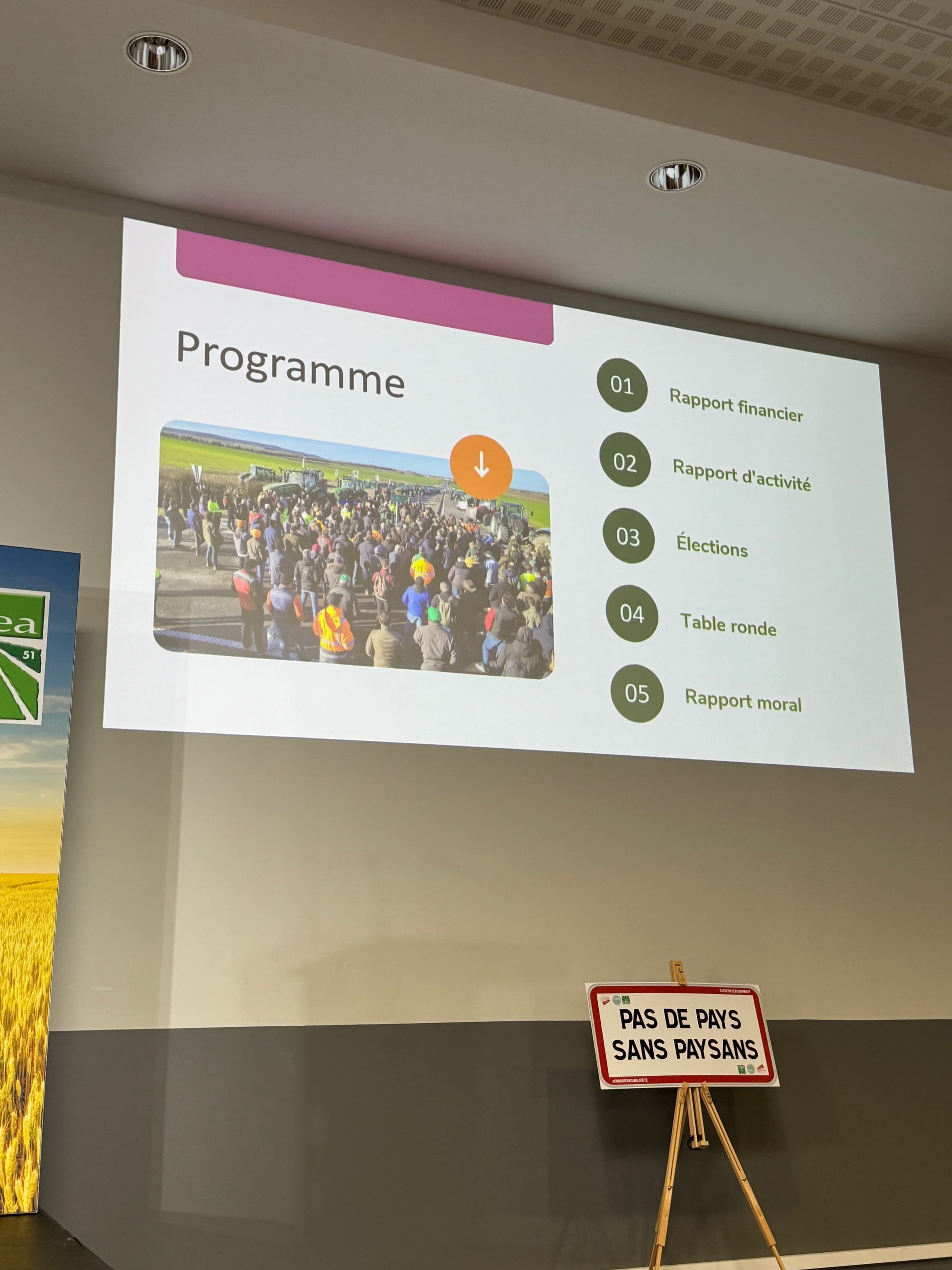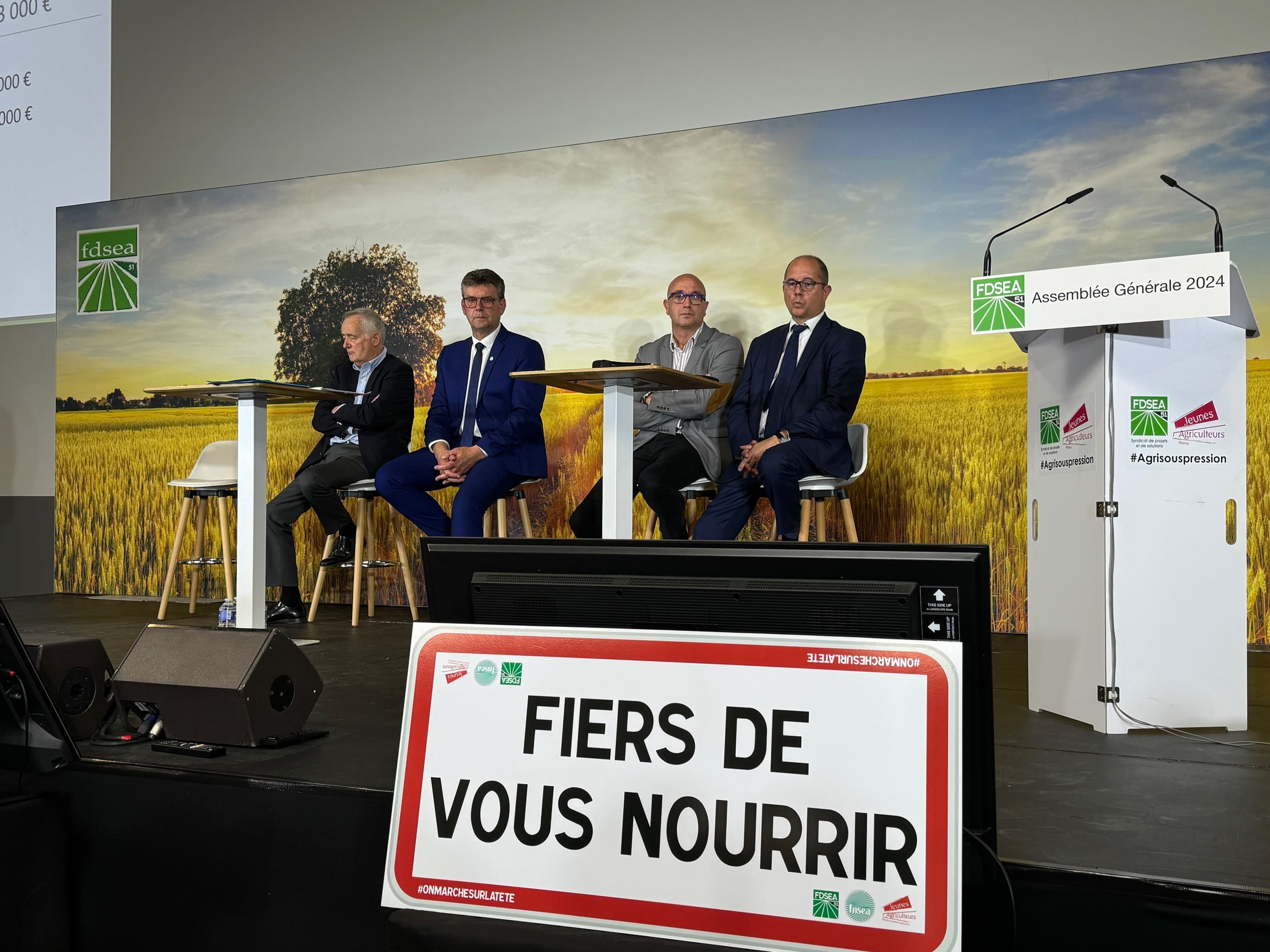 Cette année, l'AG avait pour thème : « L’unité FNSEA-JA porte ses fruits » et a accueilli Arnaud Gaillot, président national des Jeunes Agriculteurs. La réunion a été l'occasion de retracer les moments forts des mobilisations organisées par la FDSEA et les Jeunes Agriculteurs de la Marne début 2024, à travers le témoignage d’adhérents et des secrétaires généraux FDSEA 51 et JA 51.