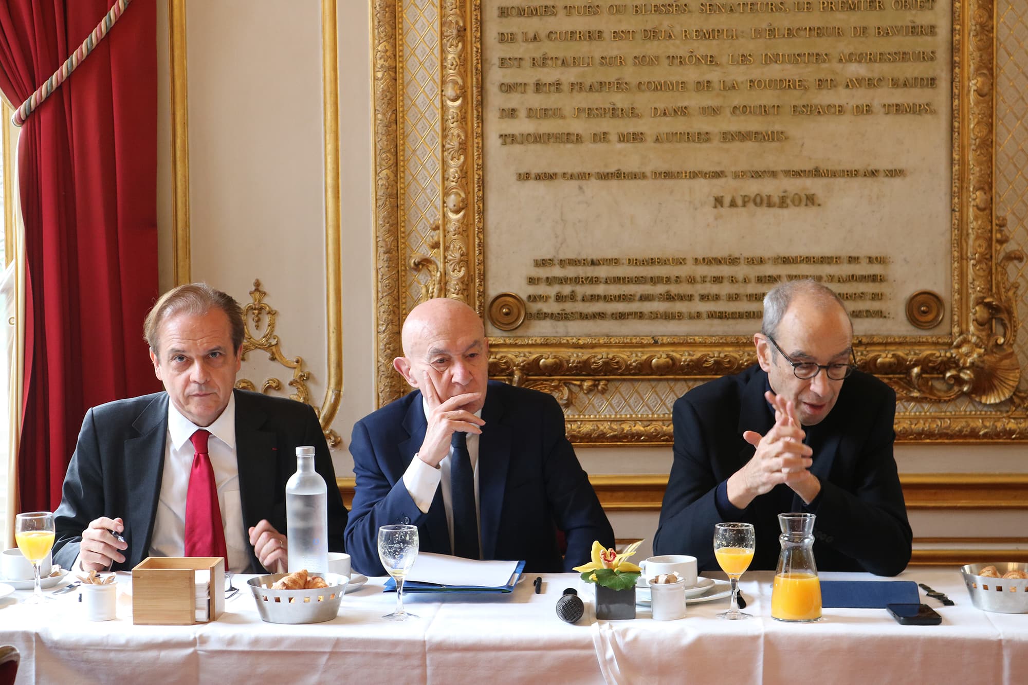 En compagnie d'Edouard Philippe, de Claude Malhuret et plusieurs de ses collègues du groupe Les Indépendants - République & Territoires, dont Louis Vogel, Cédric Chevalier a accueilli Jean Pisani-Ferry pour un petit-déjeuner sur les incidences économiques de l'action pour le climat, organisé par le pôle Idées d'Horizons.