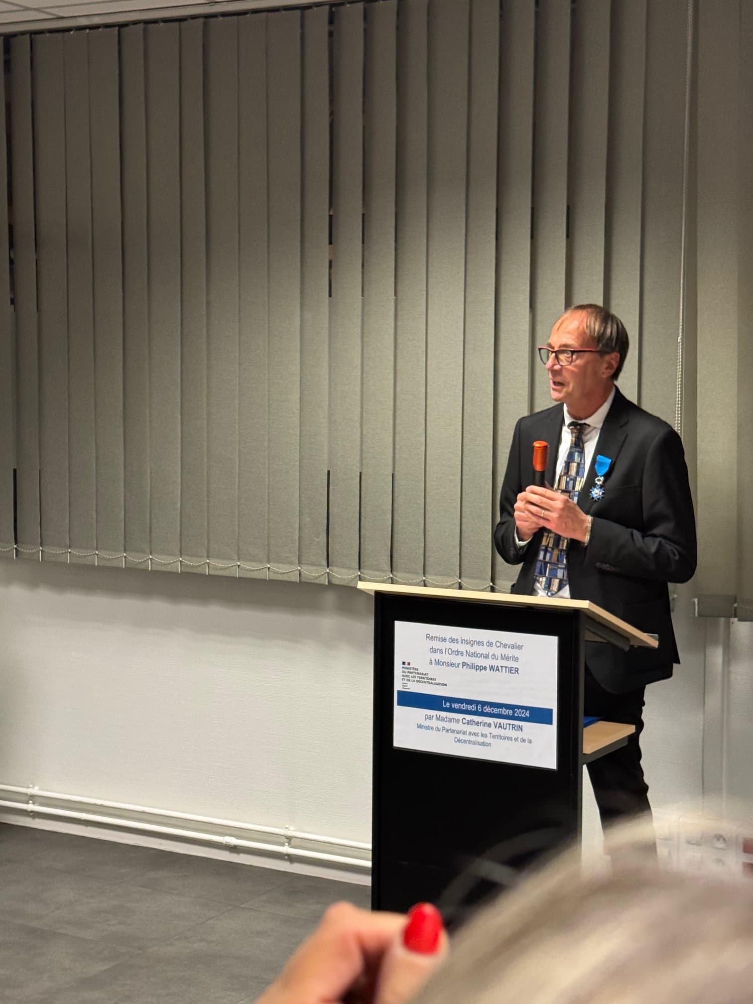 Cédric Chevalier a assisté à la cérémonie de remise des insignes de Chevalier dans l'Ordre National du Mérite à Philippe Wattier, un citoyen engagé, porté par des valeurs humanistes et investi dans la solidarité, l’insertion et le soutien aux autres, sous la présidence de Catherine Vautrin.